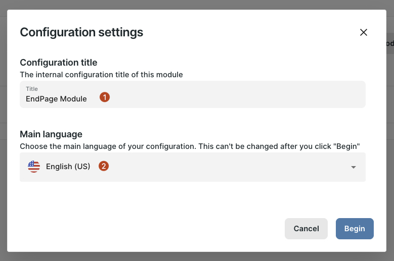 This defines the default language for all module content and cannot be changed after you click “Begin.”
