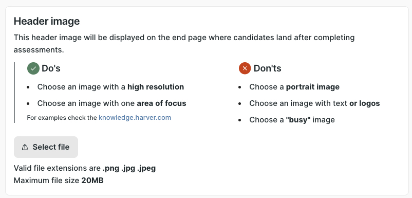 Clients should upload a high-quality header image that meets the recommended guidelines shown in the interface.