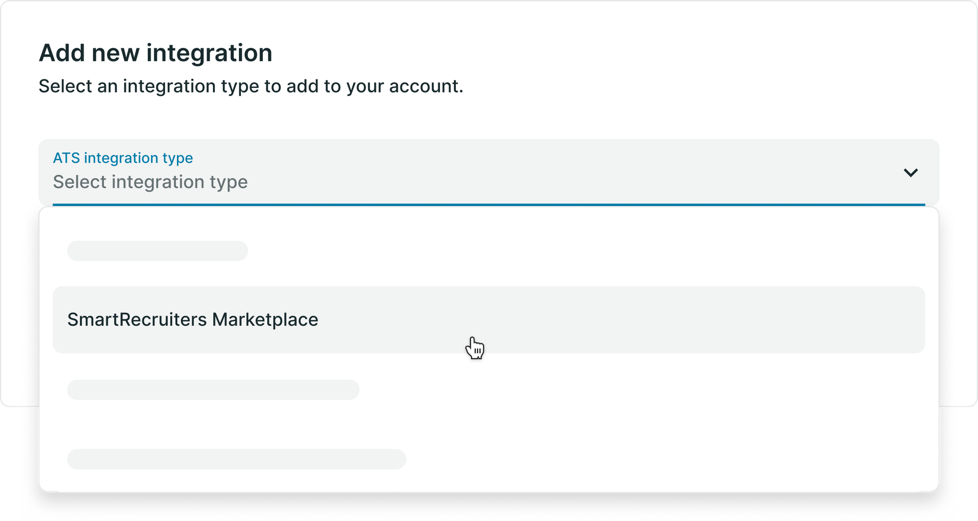 In Harver platform, go to Integration Menu tab and clicks Add new integrations. Select the SmartRecruiters from drop down and Clicks Add Integrations.