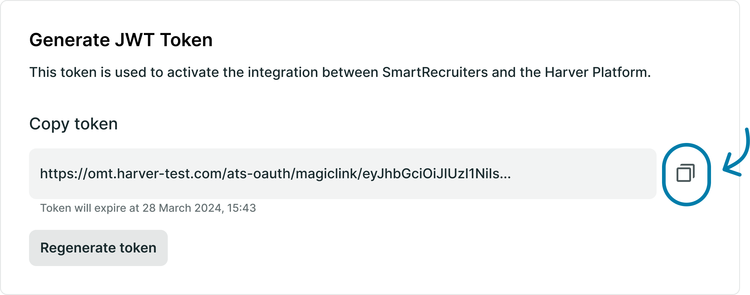 - Then go to section Credentials, and generate token which will be needed to connect SmartRecruiters and Harver, when enabling integration from SmartRecruiters.