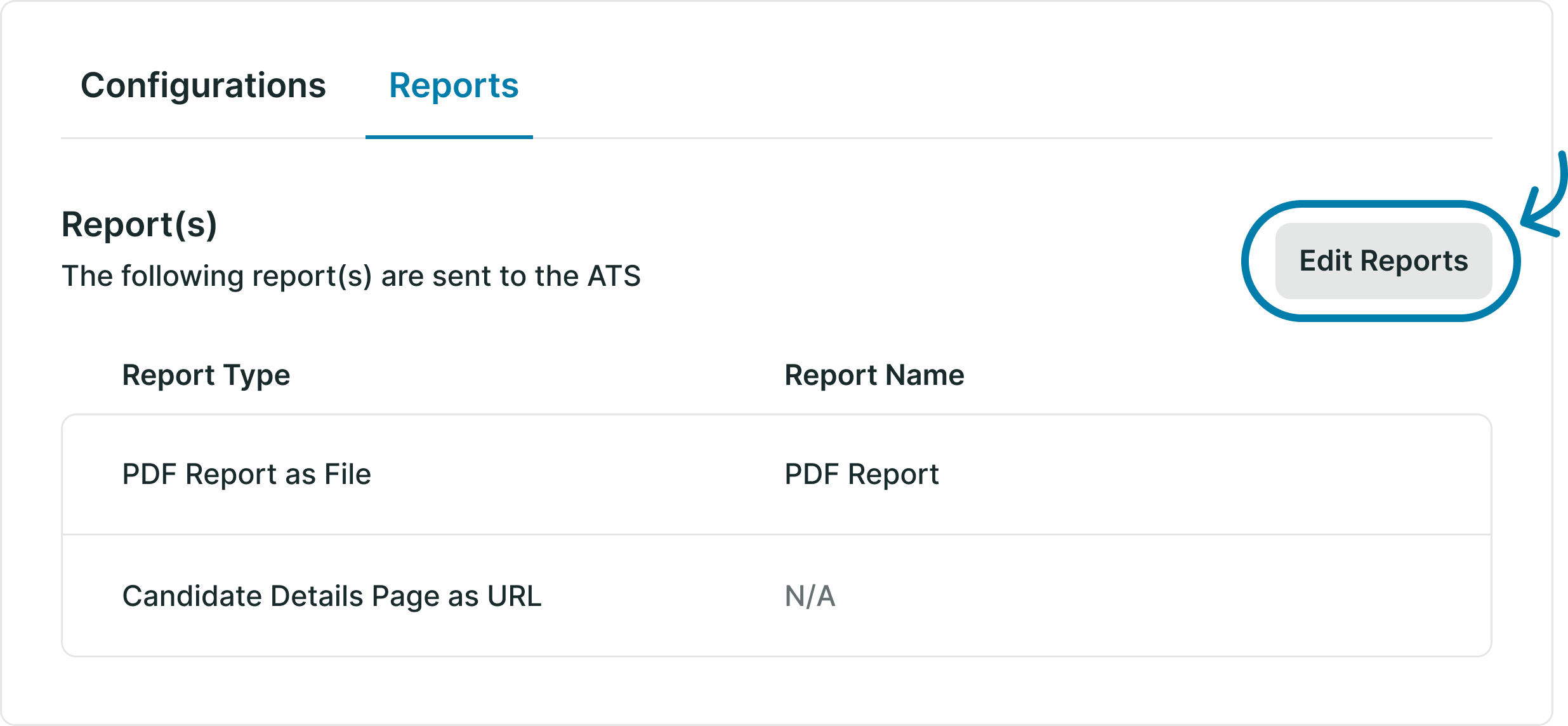 - Then in same Harver to ATS section, click Reports tab for the types of reports that need to be sent to ATS. Options are;