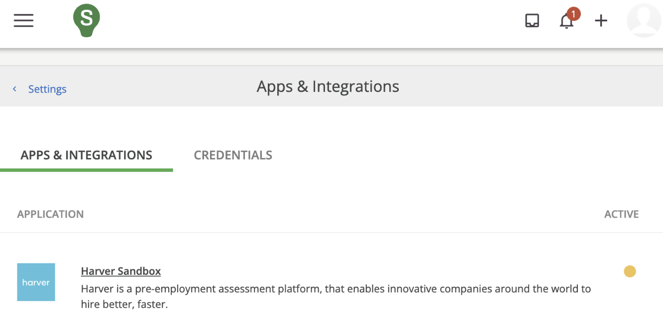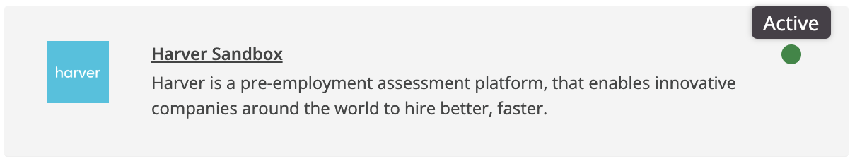 This will activate the integrations between SmartRecruiters and Harver. You should be able to see Green status which means integration is Active.