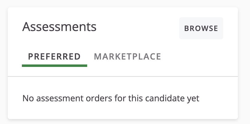 Assessment details appear in the Assessment section on the candidate profile at a time the Assessment is ordered.