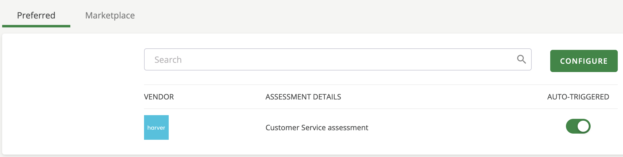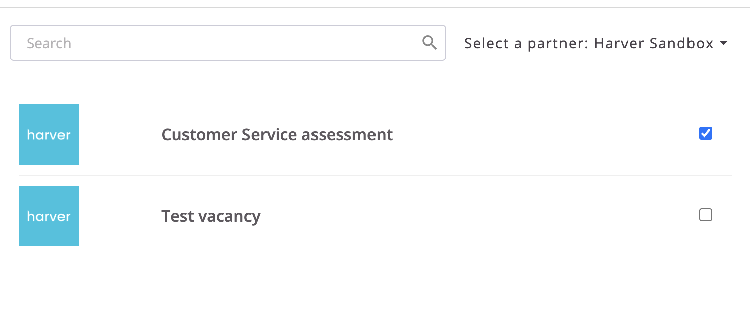 - Filter by the vendor Harver, select the assessment you want to connect to workflow.