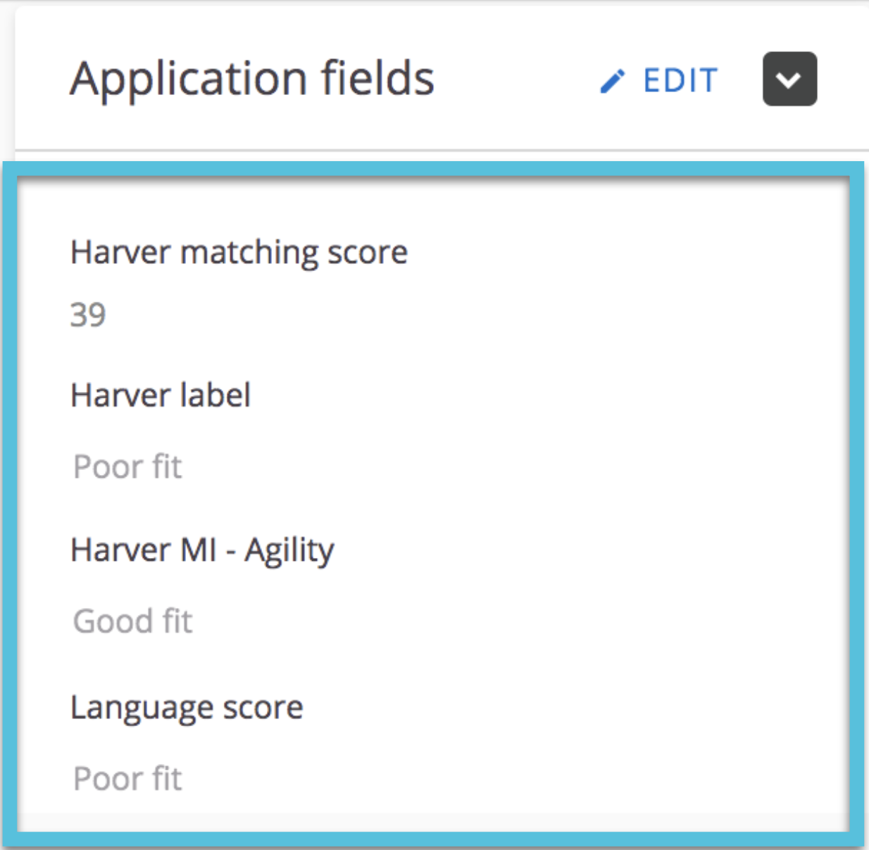 Create custom fields for the Harver matching indicators to reflect the Harver scores and labels in application fields of candidates profiles where Harver will send the results to custom fields i.e.