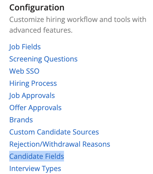 - To set, go to the account settings and select Candidate fields under configuration section.