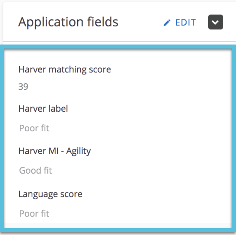 By default assessment results are send to ATS. But with this optional custom configurations of score, indicator and label, Harver will send info to ATS custom fields reflected per candidate under Application Fields in SmartRecruiters.