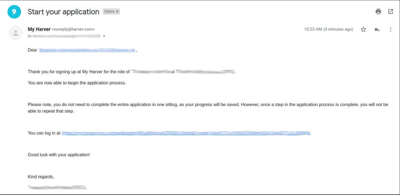 This will trigger the Harver assessment and the candidate will be invited to start the Harver Assessment.