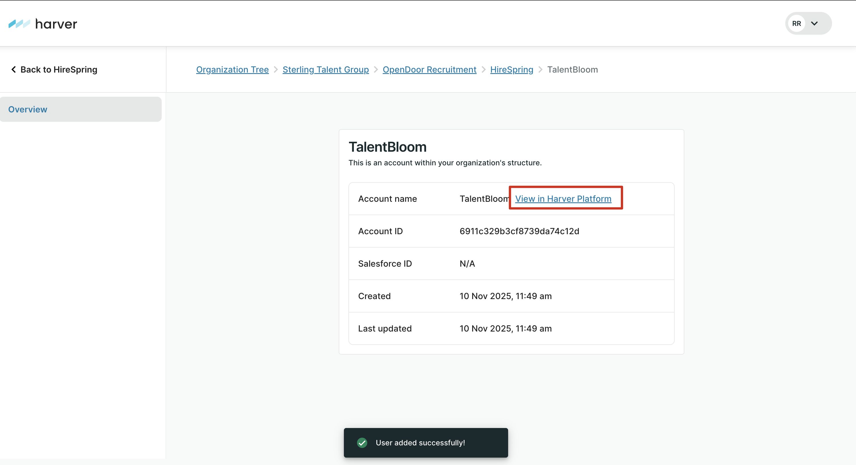 Please note, Harver Support can move/place existing accounts to an alternative Organization on request if in the future the Account must change parent Oragnization for any reason. Moving accounts between Organization ahs no affect on anything within the account (vacancies, candidates, configurations), it only affects the Organization structure and the cascading permissions set within the organizations.