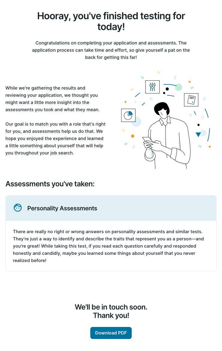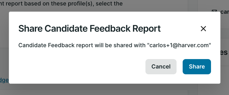 Clicking the Share with the candidate button will automatically send the report to the candidate. The email that the candidate provided to take the assessment will be used.