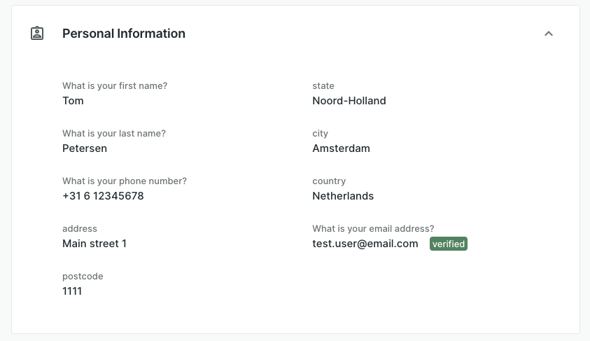 Personal Information Module Results