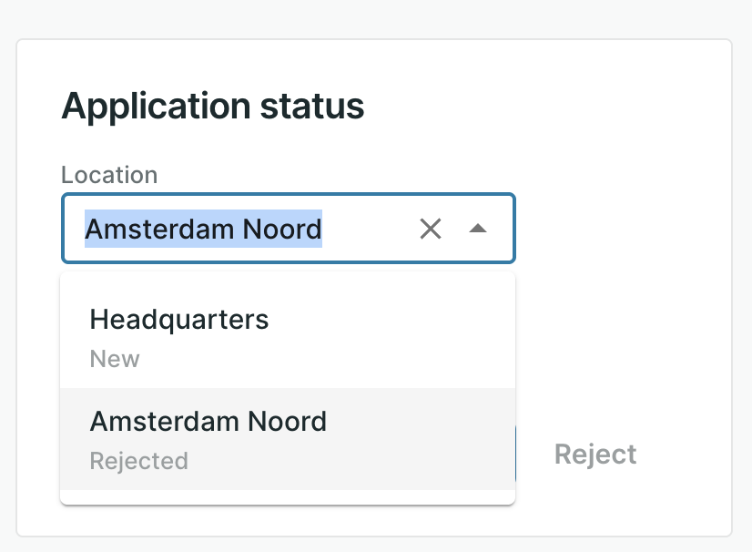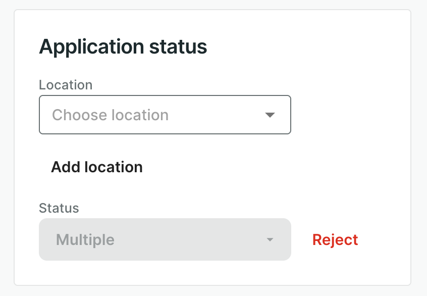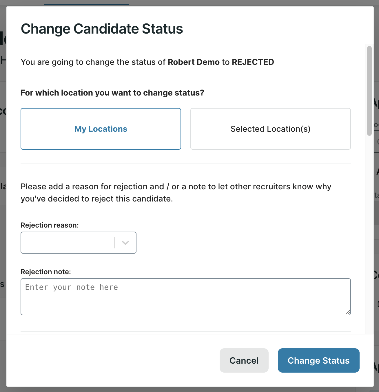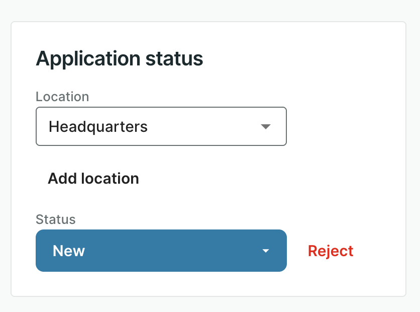 To change a candidate’s status, a location must be selected, because each application status is always tied to a specific location.