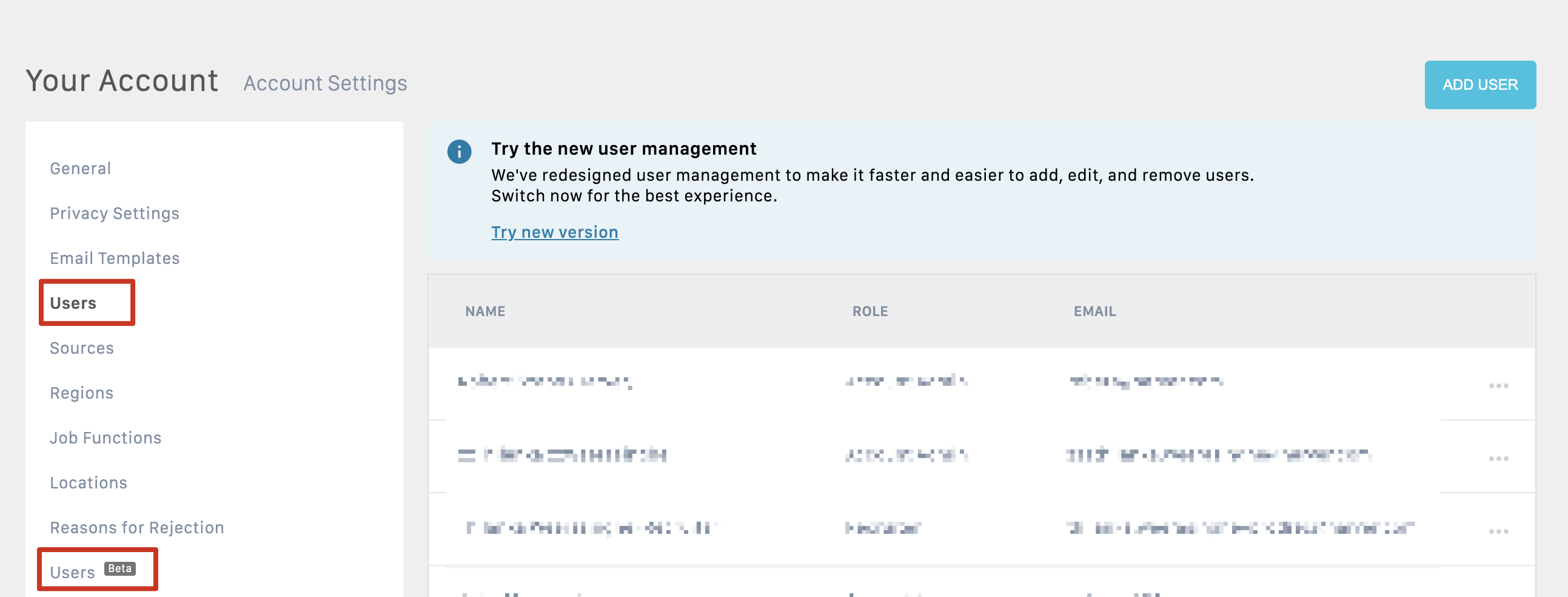 Accounts still using the legacy page will see a notification banner informing them that a new version of User Management is available.